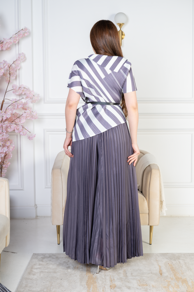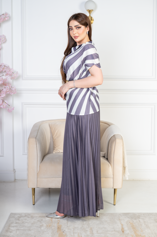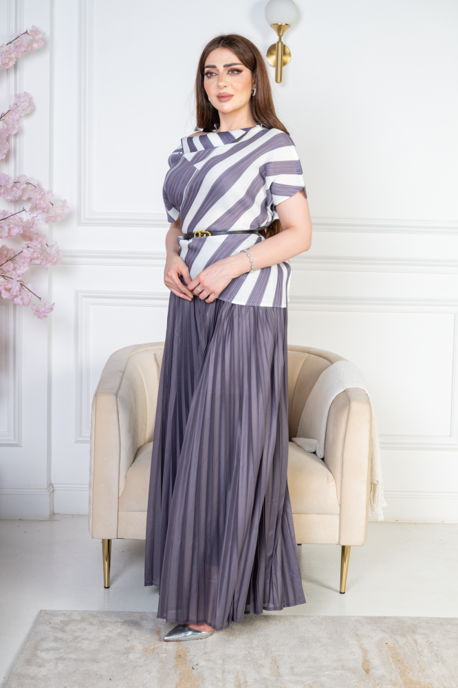 إطلالة راقية ومُفعمة بالأناقة، حيث يجتمع التصميم العصري باللمسات الكلاسيكية في طقم طقم تناسق الموج . الذي يعكس فخامة التفاصيل وبساطة الألوان المتناغمة.