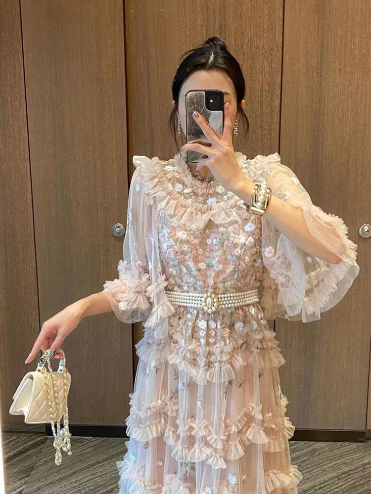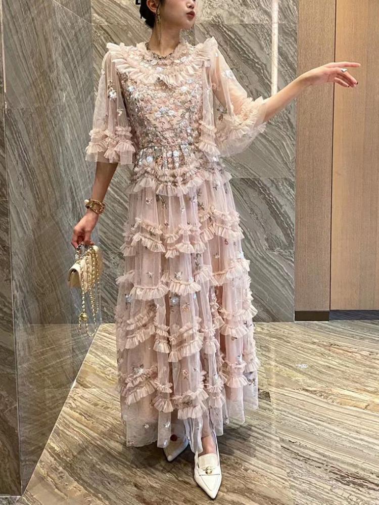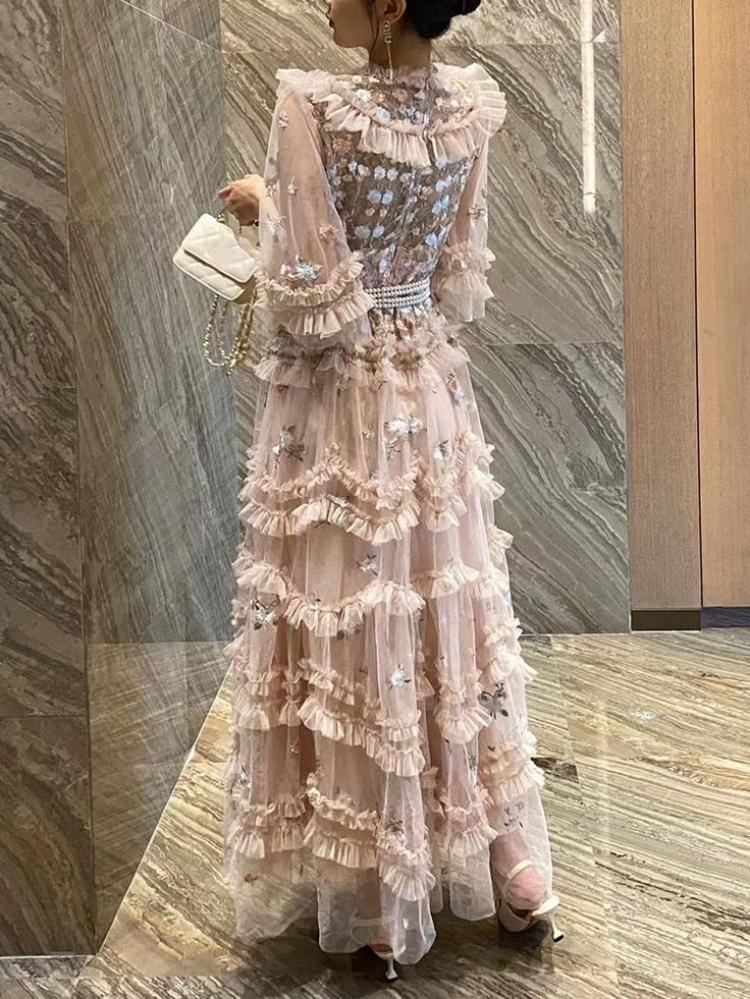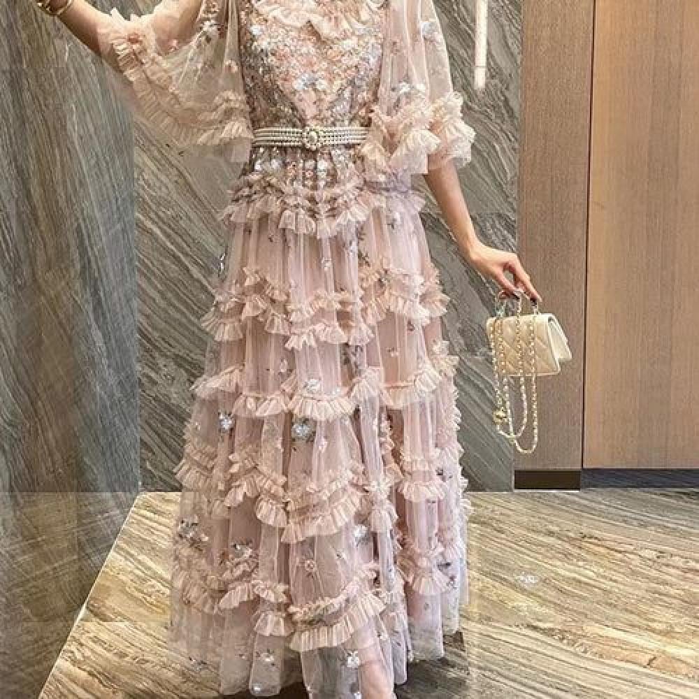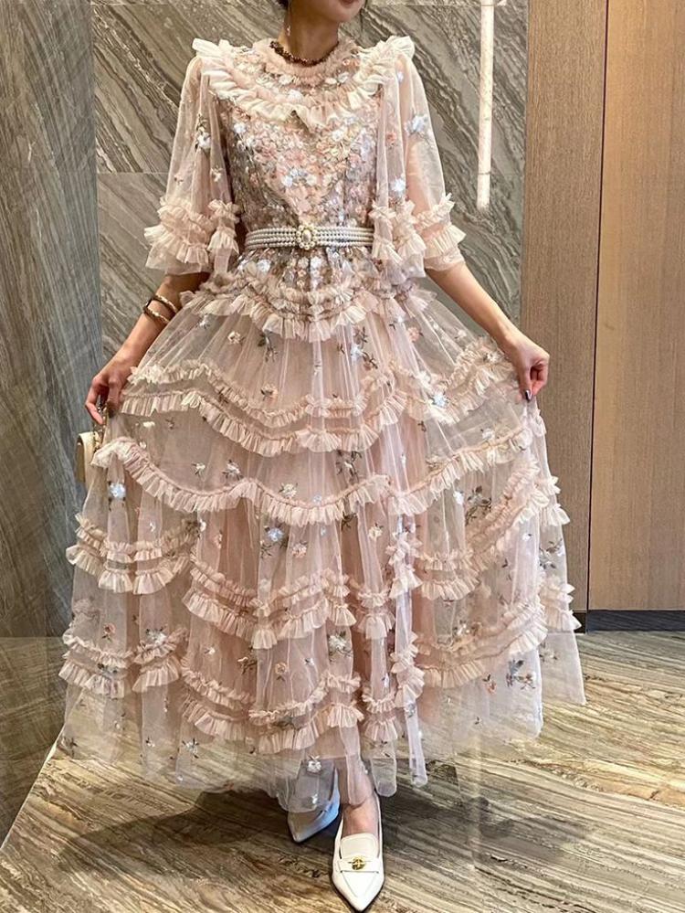 انغمسي في عالم من الأنوثة الساحرة مع فستان الزهور قطعة فنية تجسد رقة الربيع وبريق الأمسيات الاحتفالية.